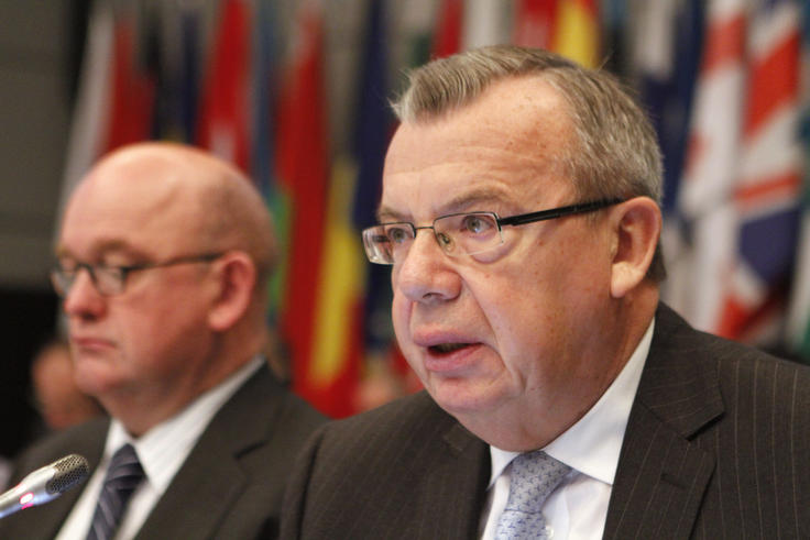 Yury Fedotov, Executive Director of the UNODC, speaking at an OSCE conference on terrorism, alongside Ambassador Eoin O’Leary, Chair of the OSCE Permanent Council, representing the Irish Chairmanship of the OSCE, Vienna, 12 November 2012.