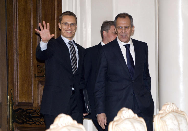Russian Foreign Minister Sergey Lavrov (Right) with OSCE Chairman-in-Office, Finnish Foreign Minister Alexander Stubb, in Moscow, 11 November 2008.