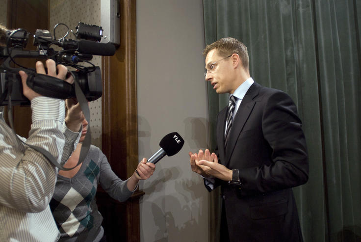 OSCE Chairman-in-Office, Finnish Foreign Minister Alexander Stubb, during a TV interview in Moscow, 11 November 2008.