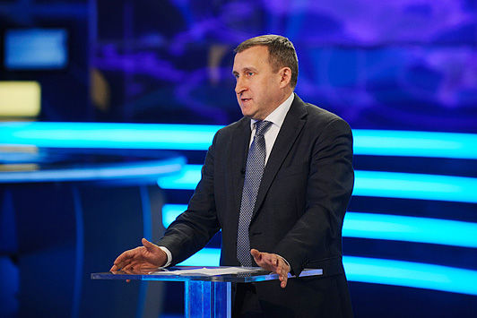 The Special Representative of the OSCE Chairperson-in-Office for conflicts, Ambassador Andrii Deshchytsia, speaks on Publika TV during a two-day visit to Moldova, 6 February 2013, Chisinau.