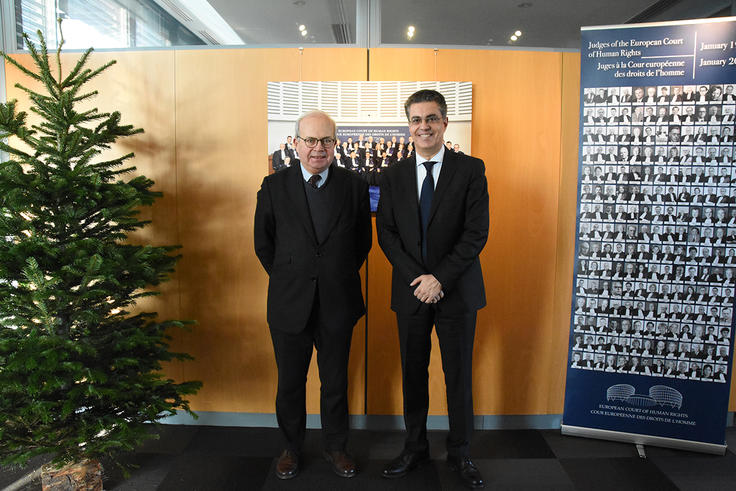 Emmanuel Decaux, President of the Court and Linos-Alexandre Sicilianos, President of the European Court of Human Rights, Strasbourg, 3 December 2019.