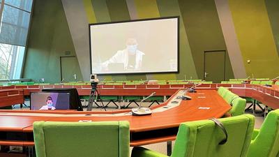 The intervention of President Decaux and Vice-President Kourula was followed by an exchange with legal advisors participating in the online meeting.