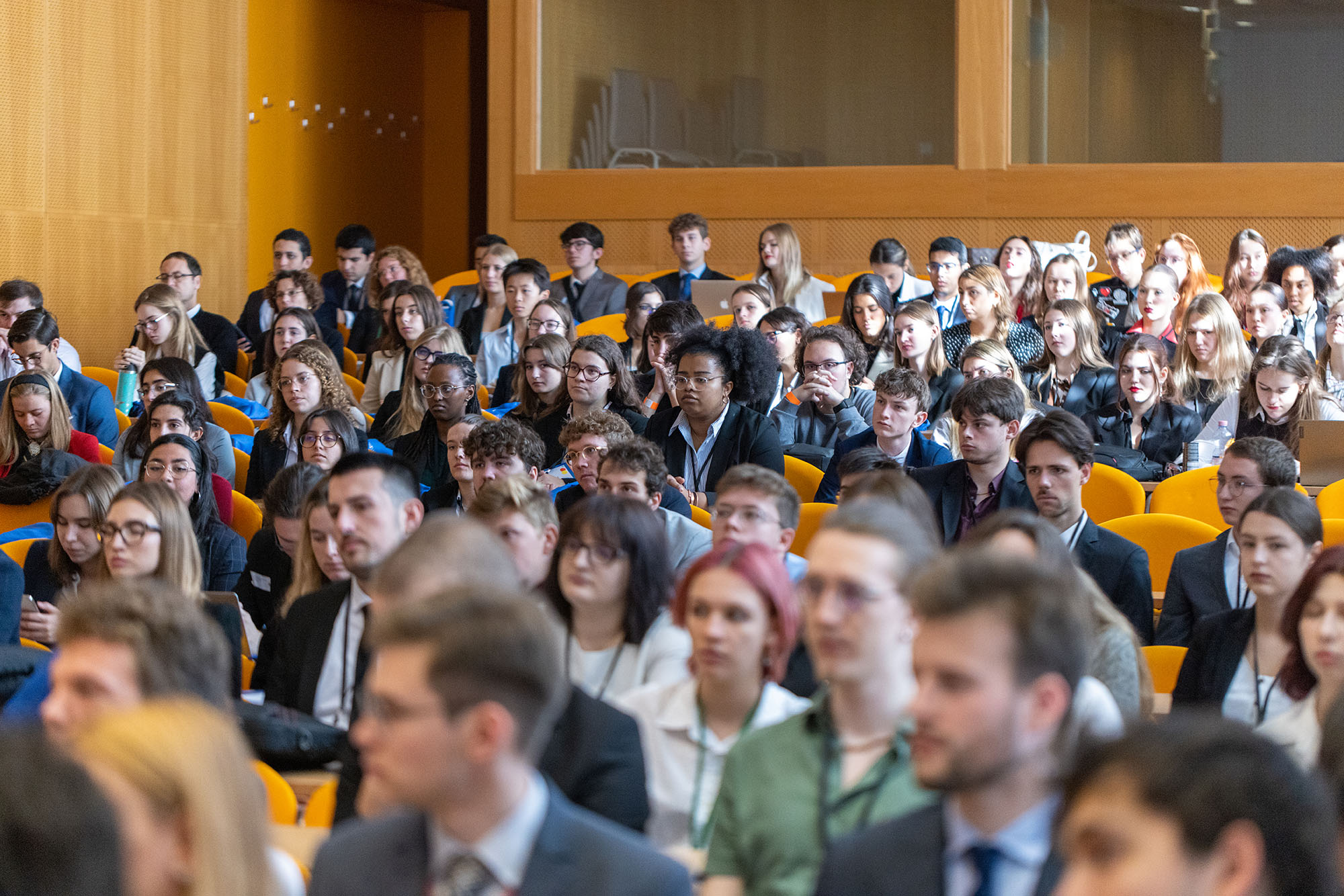 Participating students at the opening ceremony of the MUNLawS conference, hosting the OSCE Court of Conciliation and Arbitration’s Moot Court simulation, Faculty of Law, University of Ljubljana, Slovenia 11 November 2022.