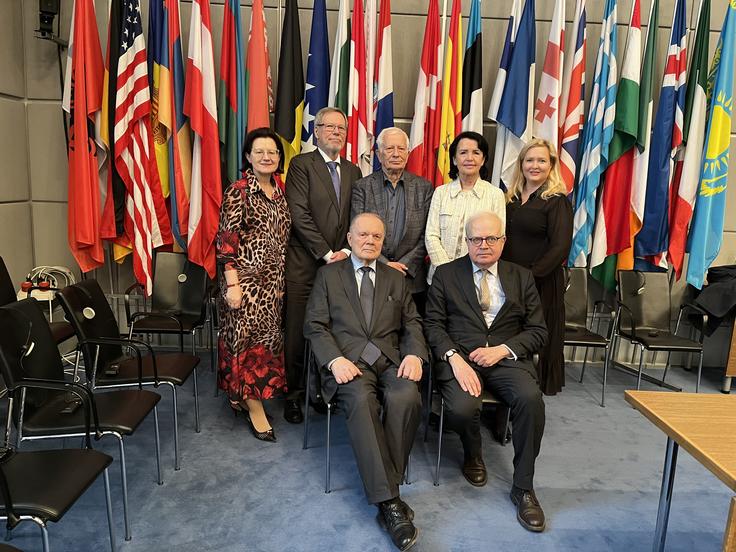 The Bureau of the OSCE Court of Conciliation and Arbitration at its meetings in Vienna, on 10 and 11 March 2025 (OSCE Congress Centre, Hofburg). From left to right: Prof. Verica Trstenjak, Justice Mats Melin, Prof. Christian Tomuschat, Anne Ramberg, Prof. Vasilka Sancin, Vice-President Erkki Kourula, and President Emmanuel Decaux