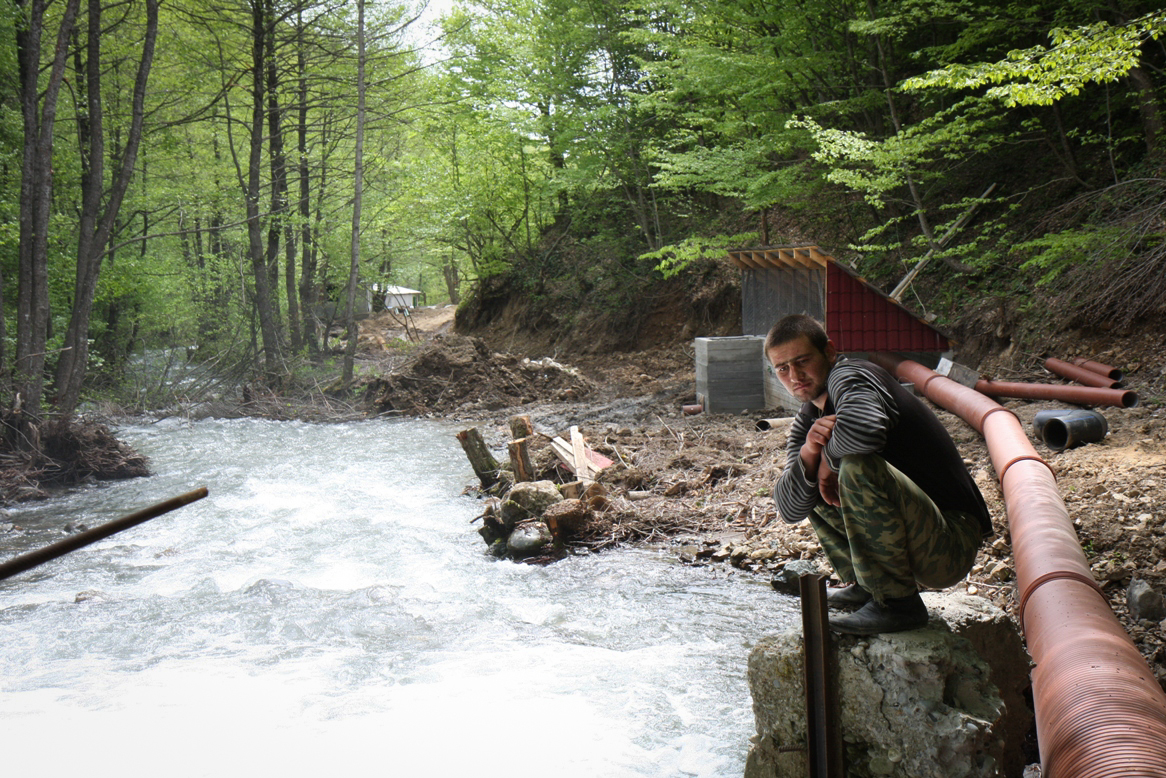 From the intake in Mukhauri, located north of the village of Znauri on the Proni River, a permanent flow of drinking water is now running through a nine-km long pipe, into the water reservoir in the village of Znauri