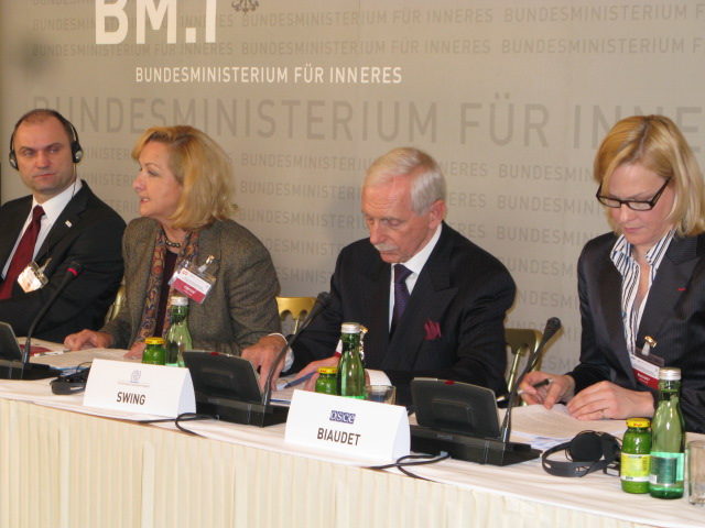 From right: Eva Biaudet, OSCE Special Representative; William Lacy Swing, IOM Director General; Maria Fekter, Austrian Minister of Interior; Ivan Langer, Czech Minister of Interior, at a conference on combating human trafficking, Vienna, 23 February 2009.