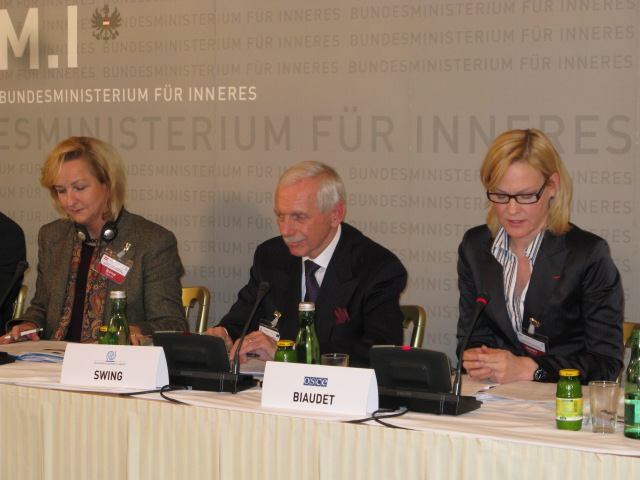 From right: Eva Biaudet, OSCE Special Representative; William Lacy Swing, IOM Director General; and Maria Fekter, Austrian Ministry of Interior during a ministerial conference on combating human trafficking in Vienna, 23 February 2009.