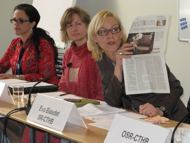 Eva Biaudet (right), OSCE Special Representative for combating trafficking in human beings; her Deputy, Ruth Pojman (centre); and Advisor, Anelise Gomes at the Alliance Expert Co-ordination Team meeting in Vienna, 20 April 2009.