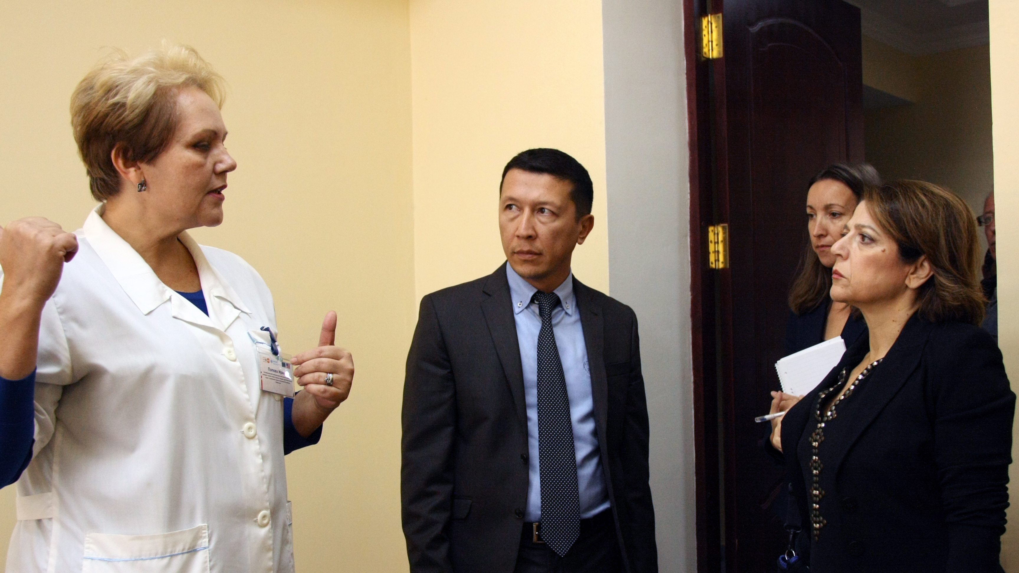 The OSCE Special Representative and Co-ordinator for Combating Trafficking in Human Beings Maria Grazia Giammarinaro (r) meets with Irina Popova, Deputy Director of the State Rehabilitation Centre for Trafficking Victims, Tashkent, 6 November 2013.