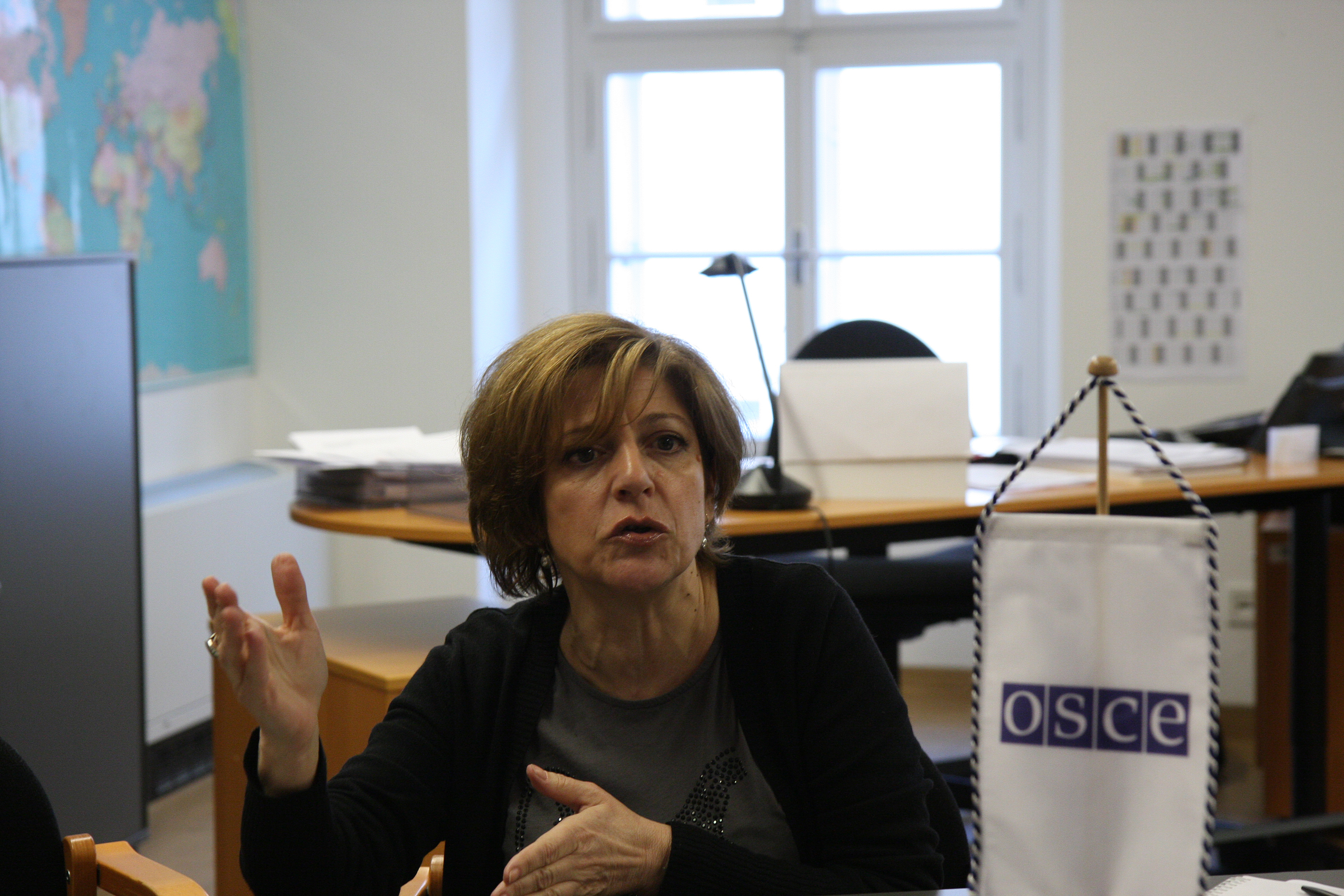 Maria Grazia Giammarinaro, the OSCE Special Representative and Co-ordinator for Combating Trafficking in Human Beings, during a press briefing in her office. Vienna, 18 March 2010.