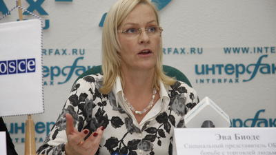"We need to have a clearer understanding of the scope of the crime and its trends, as well as an accurate assessment of the results of our actions. This is why the OSCE supports the exchange of information among participating States and advocates the establishment of National Rapporteurs or equivalent mechanisms for effective policy-making based on concrete and comparable information," said Biaudet at a news conference held at Interfax news agency.