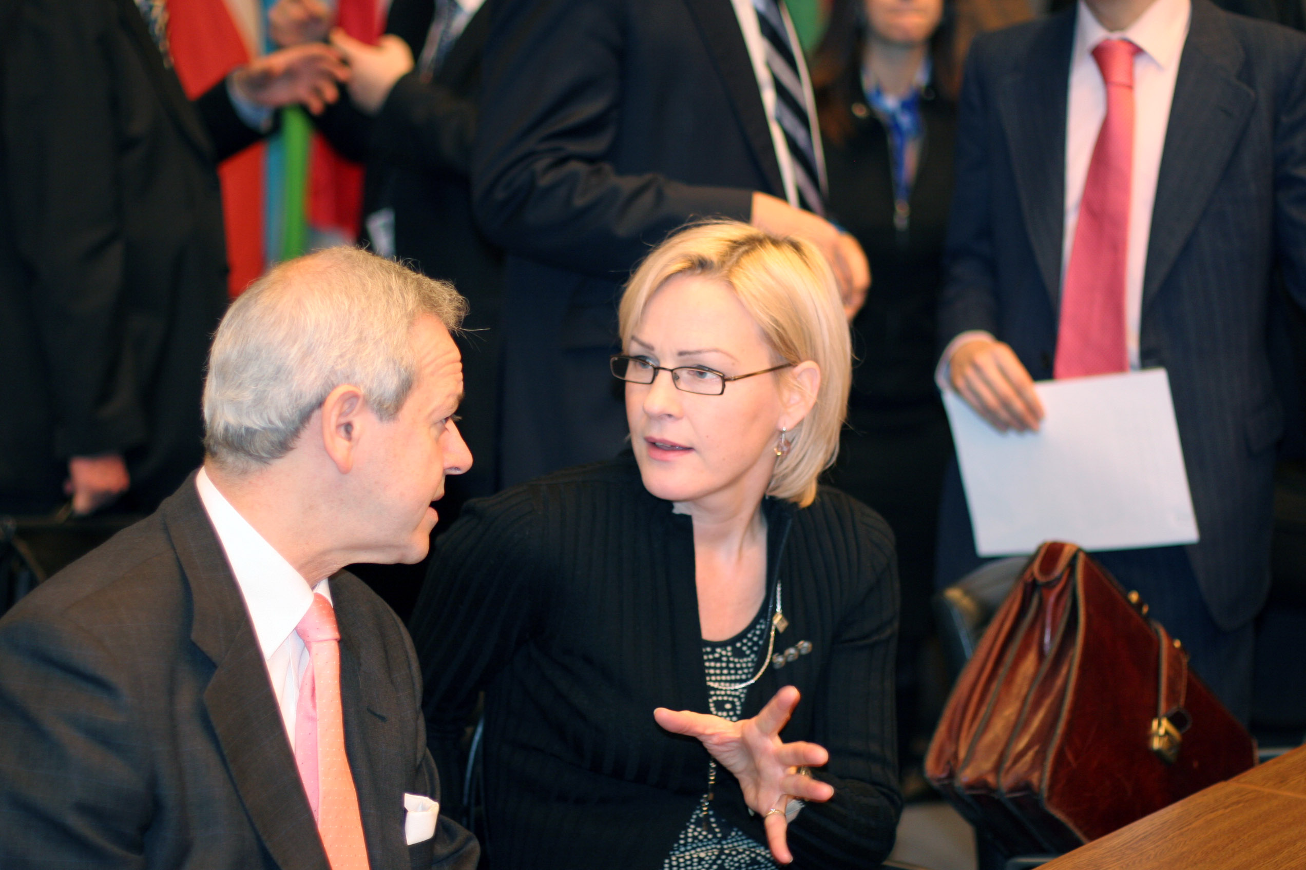 Eva Biaudet (R), the OSCE Special Representative and Co-ordinator on Combating Trafficking in Human Beings, at the Permanent Council in Vienna, 18 January 2007.