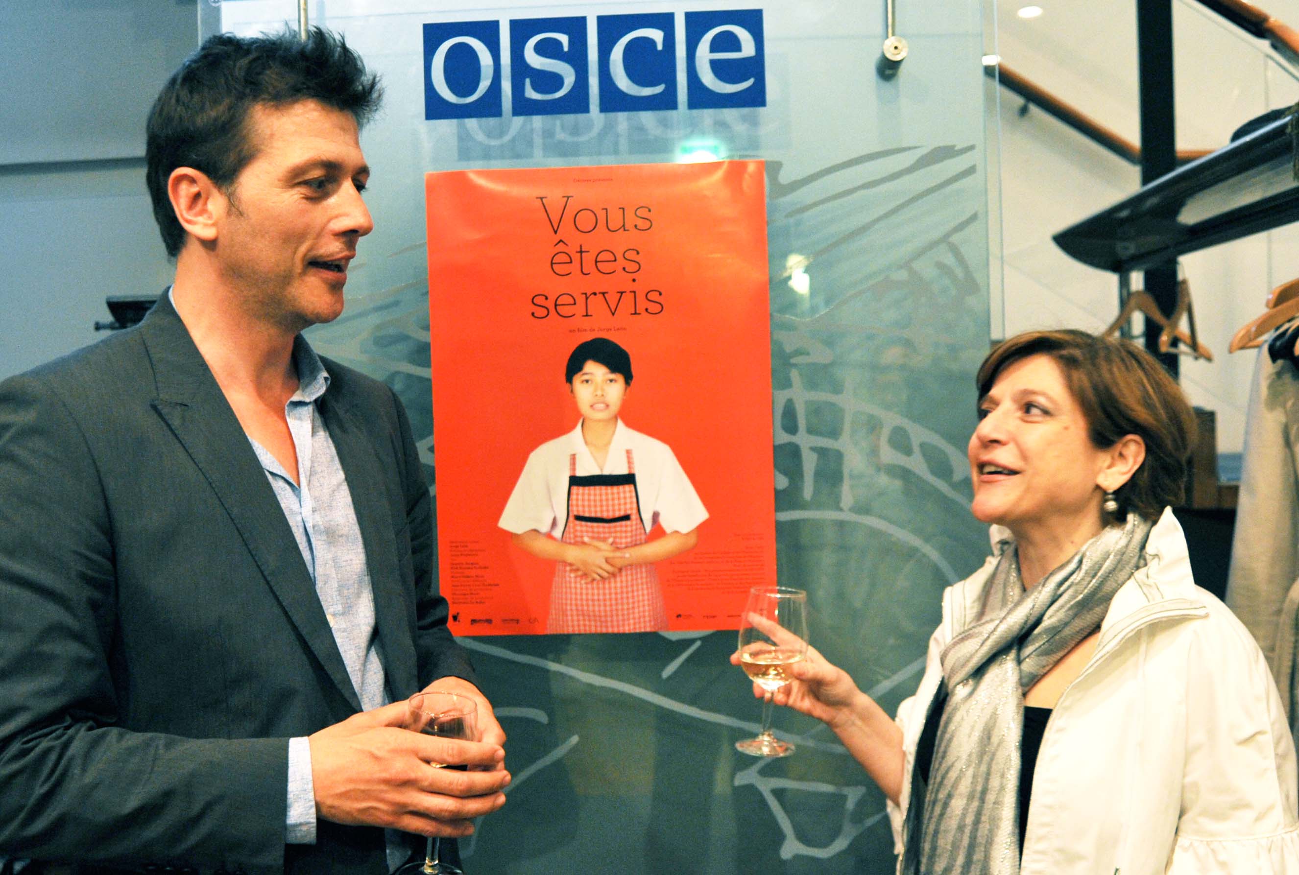 Jorge Leon (l), director of Vous etes servis, and Maria Grazia Giammarinaro, OSCE Special Representative and Co-ordinator for Combating Trafficking in Human Beings, at the 10th Alliance against Trafficking in Persons Conference, Vienna, 17-18 June 2010