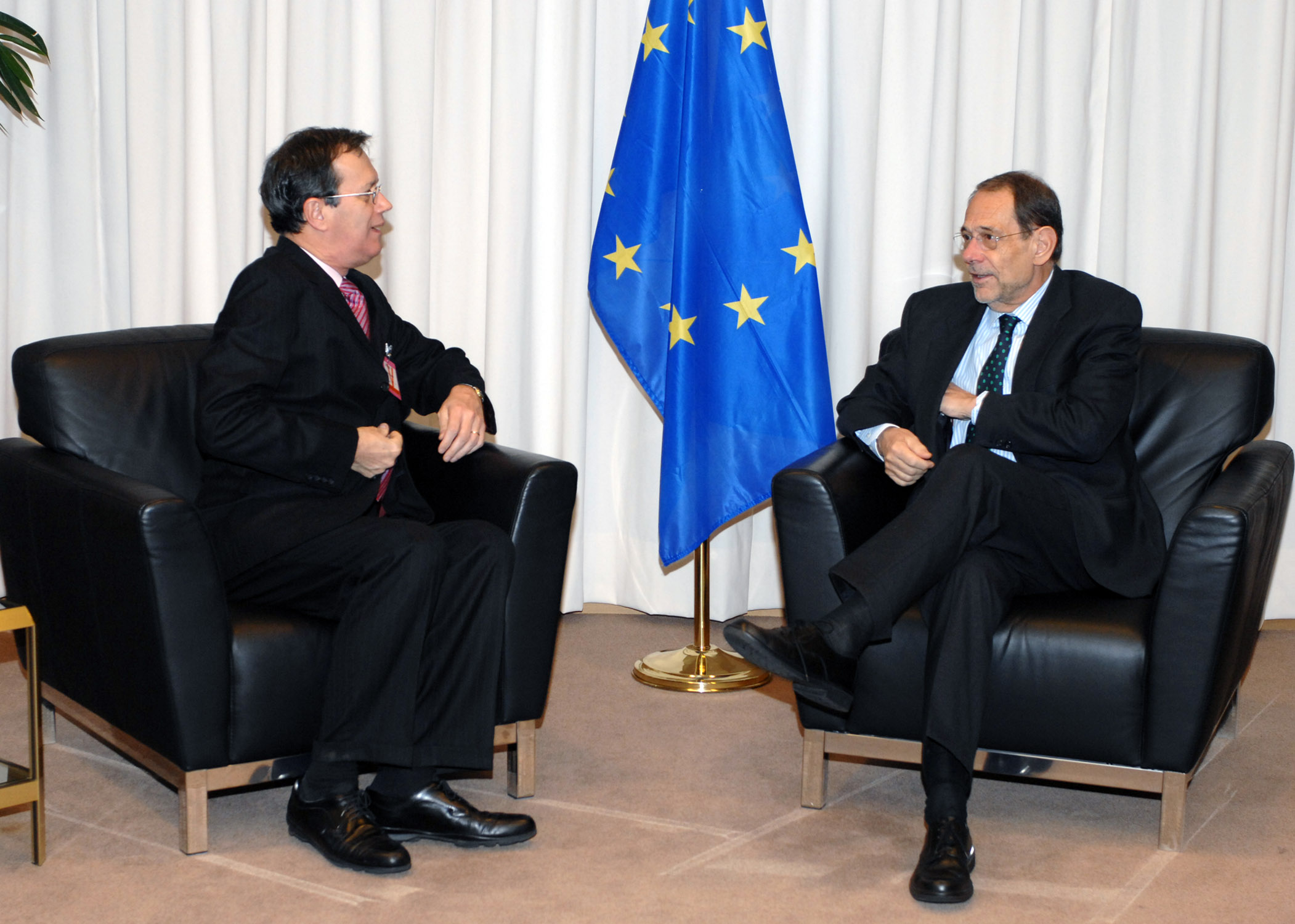OSCE Secretary General, Marc Perrin de Brichambaut (left), meets the EU High Representative for the Common Foreign and Security Policy, Javier Solana, in Brussels, 20 November 2007.