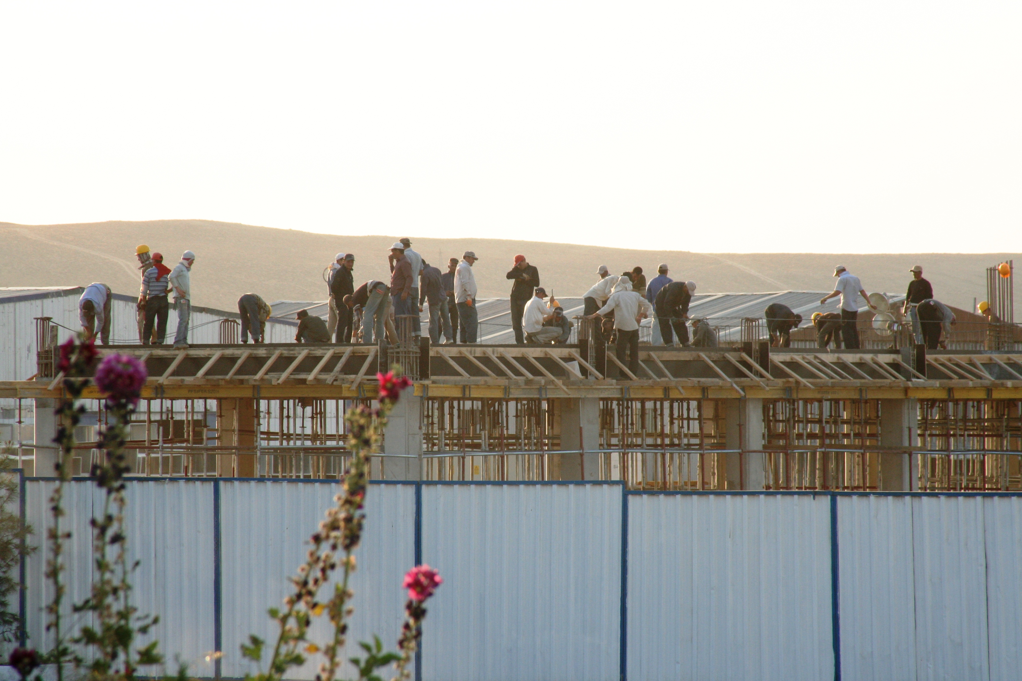 Contruction workers at the new airport site in Turkmenbashi, 3 July 2009, Turkmenistan