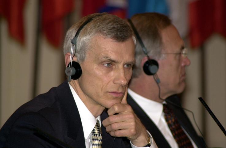 Marcin Swiecicki, Co-ordinator on OSCE Economic and Environmental Activities, and Daan Everts, Personal Representative of the OSCE CiO, at the third preparatory OSCE seminar on drugs trafficking in Tashkent, Uzbekistan, 17 and 18 March 2003.