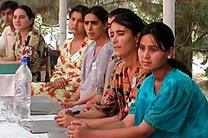 Students in Tajikistan participating in OSCE-supported training workshops learn how to protect their environment, July 2003.