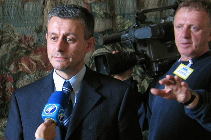 OSCE Chairman-in-Office, Bulgarian Minister of Foreign Affairs Solomon Passy, speaks to the press at the 12th OSCE Economic Forum, in Prague 31 May 2004.
