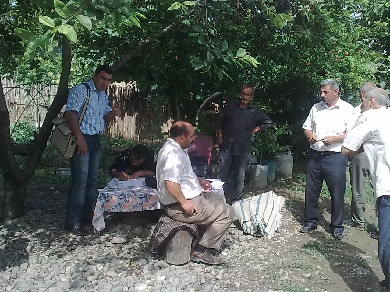Staff of the Economic Research Centre, an independent research institute, conduct interviews with farmers in Ganja, Azerbaijan, 25 June 2010.
