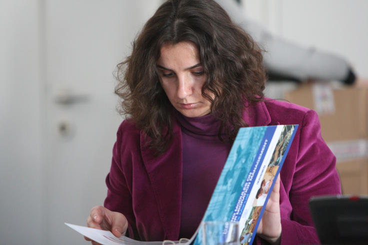 A guest at a launch event in Vienna for the "Training Modules on Labour Migration Management – Trainer’s Manual", produced by the OSCE and IOM, examines a copy of the manual, 10 February 2011.