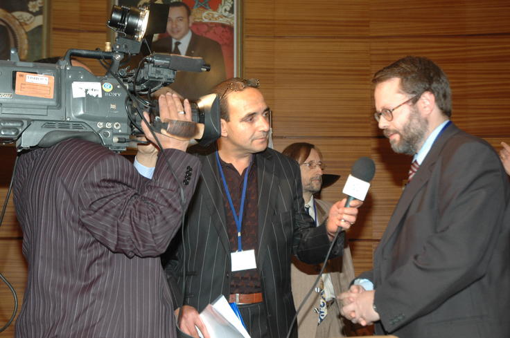 Jose Luis Lozano Garcia, Deputy Head of the Spanish OSCE Chairmanship Task Force, talks to the press at the launch event of the Mediterranean edition of the Handbook on Establishing Effective Labour Migration Policies, in Rabat, Morocco, 12 December 2007.