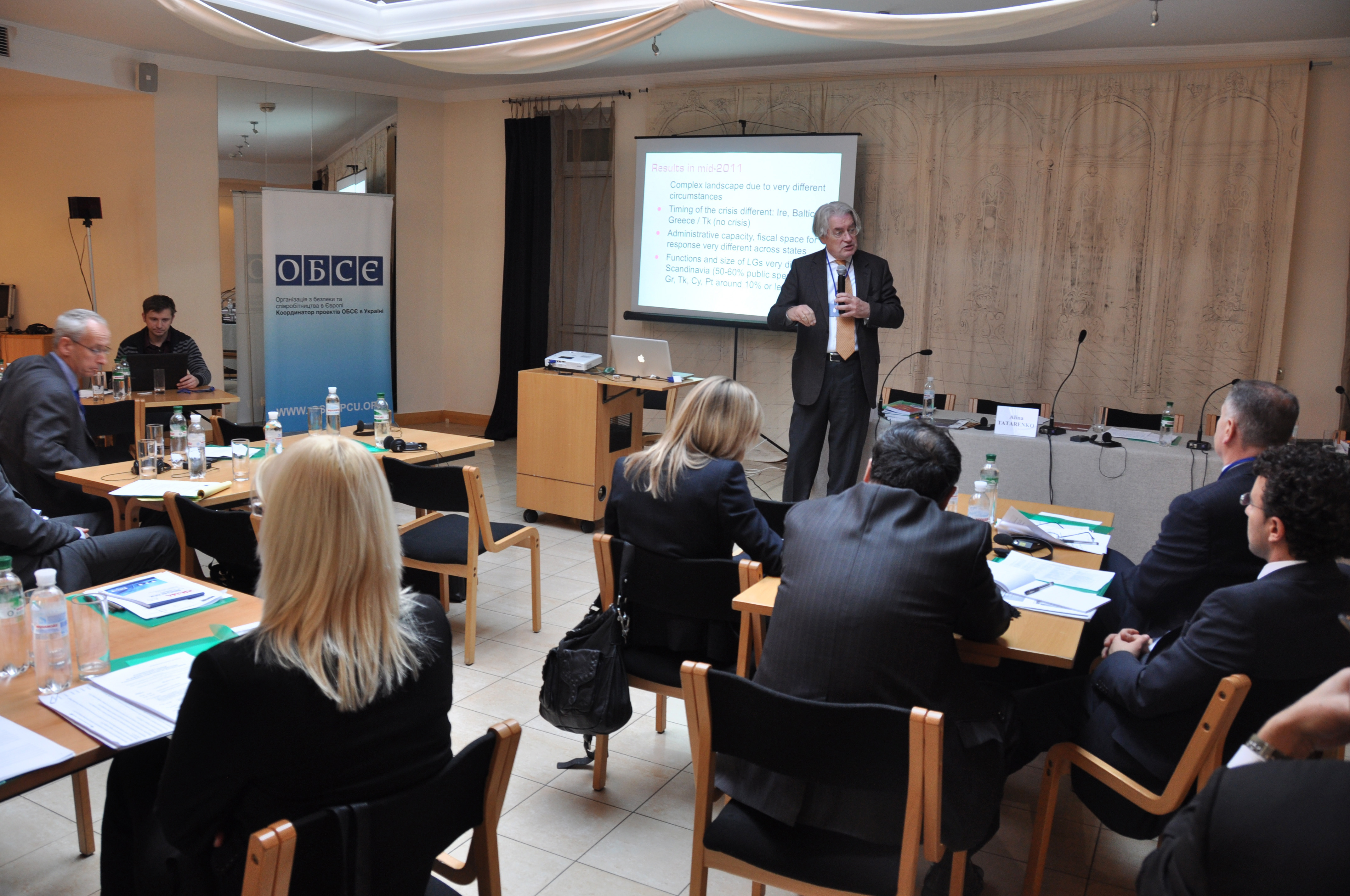 Participants discuss local good governance issues at a seminar held by the Office of the Co-ordinator of OSCE Economic and Environmental Activities and the Council of Europe’s Centre of Expertise for Local Government Reform, Kyiv. 7 December 2011.