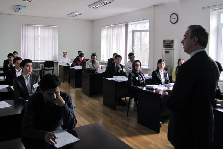 Goran Svilanovic, the Co-ordinator of OSCE Economic and Environmental Activities, speaking to students at the OSCE Academy in Bishkek, 26 March 2012.