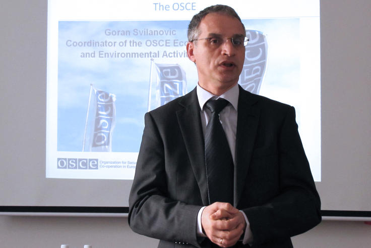 Goran Svilanovic, the Co-ordinator of OSCE Economic and Environmental Activities, speaking to students at the OSCE Academy in Bishkek, 26 March 2012.
