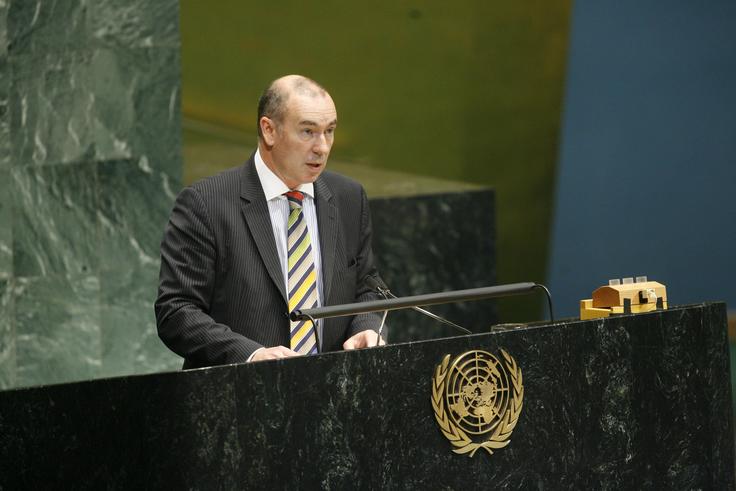Marc Baltes, Senior Adviser to the Co-ordinator of OSCE Economic and Environmental Activities, addresses a UN General Assembly meeting on landlocked countries, New York, 3 October 2008.