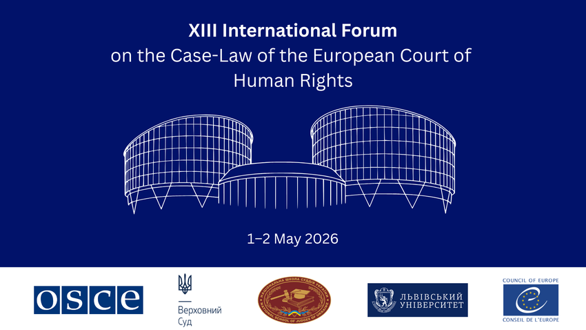 From 1 to 2 May 2026, the Supreme Court, together with Ivan Franko National University of Lviv and the National School of Judges of Ukraine, in partnership with the OSCE Support Programme for Ukraine and the Council of Europe, is organizing the XІII International Forum on the Case-Law of the European Court of Human Rights.