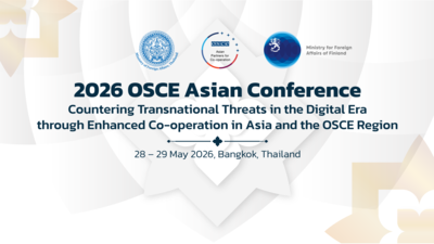 The 2026 OSCE Asian Conference will address “Countering Transnational Threats in the Digital Era Through Enhanced Co‑operation in Asia and the OSCE Region.” The event will be co‑organized by the Ministry of Foreign Affairs of the Kingdom of Thailand, the Ministry for Foreign Affairs of Finland, and the Organization for Security and Co‑operation in Europe (OSCE). It will take place in Bangkok, Thailand, on 28-29 May 2026.