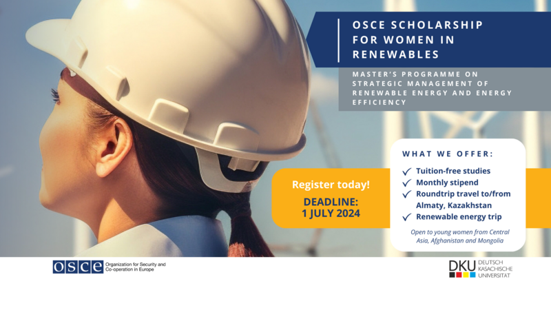 To support young women’s early careers in the renewable energy sector, the OSCE is proud to announce the second edition of the fully-funded scholarship for the Master’s programme in Strategic Management of Renewable Energy and Energy…