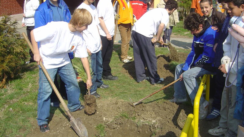 Tree planting event for high school students and police