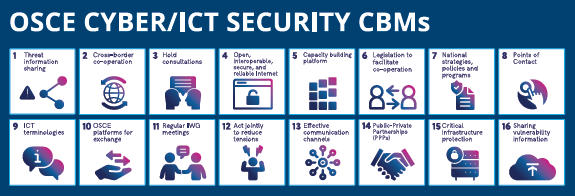 Based on a set of 16 confidence-building measures (CBMs) agreed upon by the participating States, we are engaged in making cyber activity more predictable and helping avoid potential misunderstandings and miscalculations.