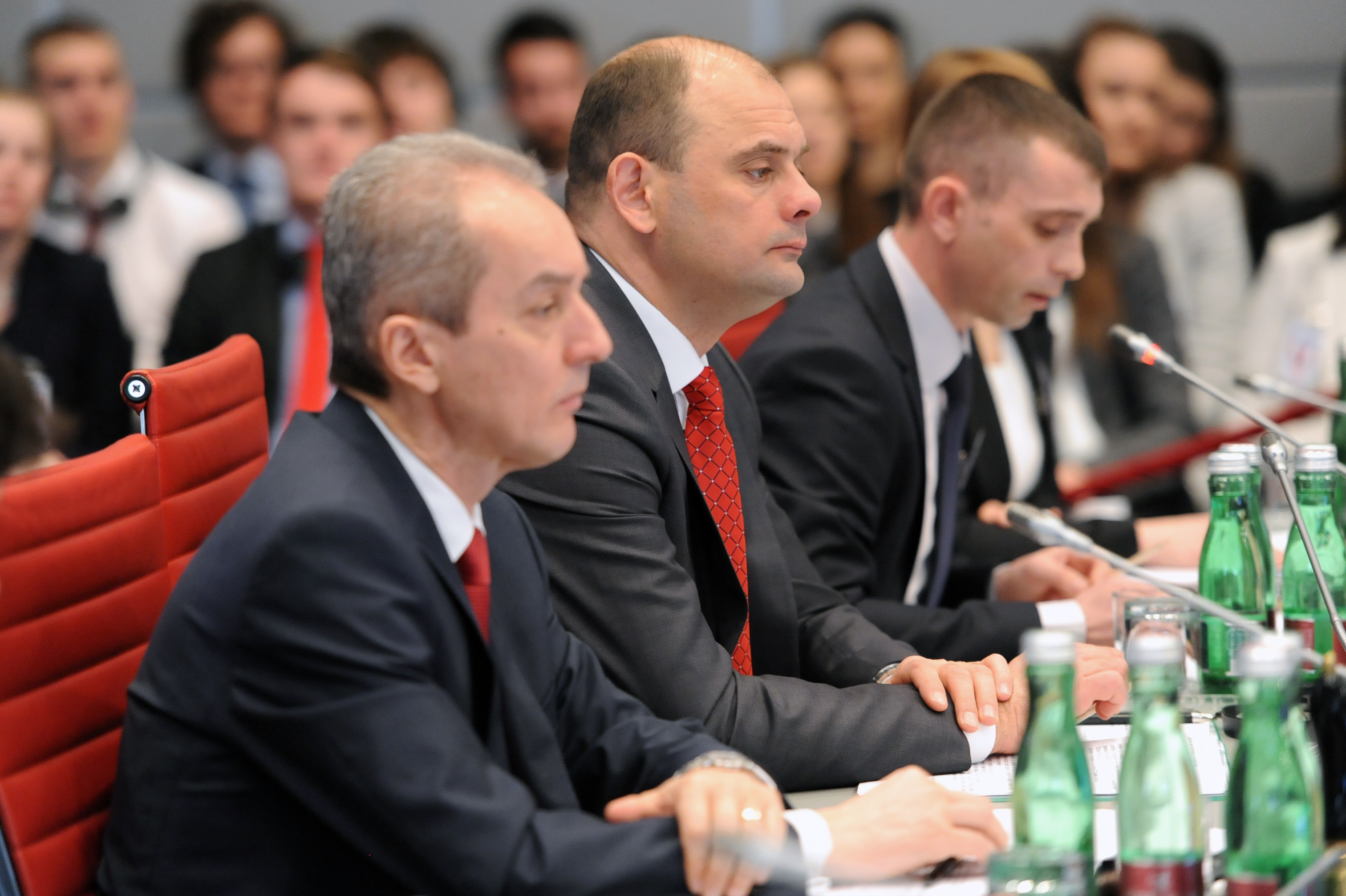 (l-r) Ambassador Cristian Istrate of Romania, FSC Chairperson; Oleg Babin, Moldova’s Deputy Interior Minister and Lieutenant-Colonel Andrei Camerzan, General Staff of Moldova’s National Army at the Forum of Security Co-operation session on 29 March 2017, Vienna.