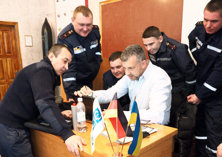 State Emergency Service of Ukraine (SESU) Teams learn how to operate EOD equipment during Training on Practical Use of the Explosive Ordnance Reconnaissance Equipment organized by the OSCE, Kharkiv region, 12-14 December 2017.