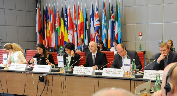 Participants of the Forum for Security Co-operation’s session on combating the uncontrolled proliferation of illicit small arms and light weapons, Vienna, 17 May 2017.