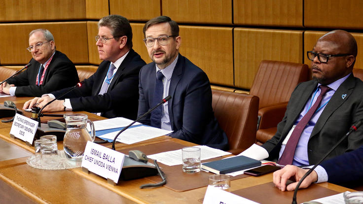 OSCE Secretary General Thomas Greminger welcoming participants of the OSCE Scholarship for Peace and Security training course on arms control, disarmament and non-proliferation, Vienna, 12 February 2018.