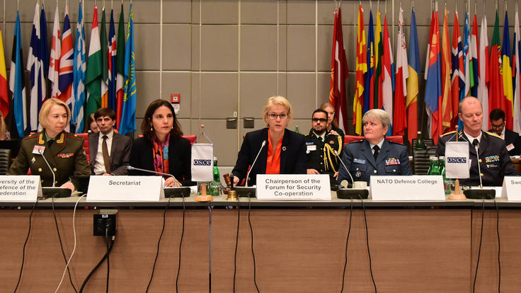 Speakers of the OSCE Forum for Security Co-operation meeting on the Code of Conduct on Politico-Military Aspects of Security - Defence Personnel Policy, Training and Education from an Individual Rights' Perspective, Vienna, 24 October 2018.