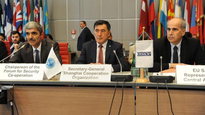 SCO Secretary General Vladimir Norov highlighted the already close co-operation between his organization and the OSCE, stating that five SCO Member States are OSCE participating States. He said the organizations should work together in the field of countering new challenges, threats and sustainable development not only in Central Asia and Afghanistan, but also in the vast Eurasian space. He added that his Organization was currently working on a draft concept for the establishment of an SCO Anti-Drug Centre in Dushanbe.