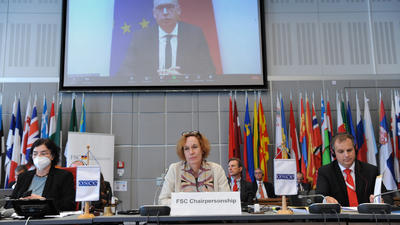 Addressing representatives of the OSCE participating States from Berlin via video teleconference, Annen said: “The noticeable erosion of the European security order through a series of conflicts - I say this not least with a view to the annexation of Crimea by Russia and the conflict in eastern Ukraine - have a direct impact on the work of the FSC. Trust is the most important asset in the OSCE - but it is disappearing day by day.”