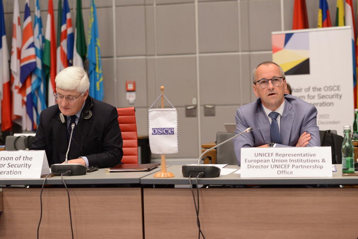 Didier Nagant de Deuxchaisnes, Belgium’s Permanent Representative to the OSCE and FSC Chair and Geert Cappelaere, Director of the UNICEF Partnership Office in Brussels, Vienna, 14 September 2022.