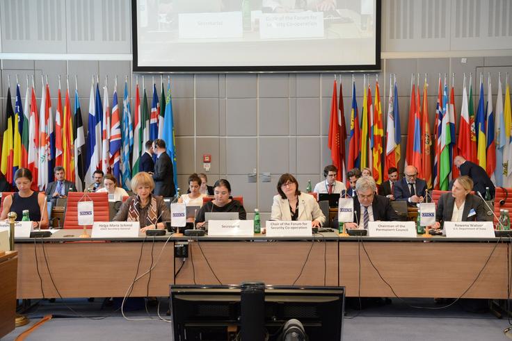 Speakers at the Joint Meeting of the Forum for Security Co-operation and the Permanent Council, Vienna, 12 July 2023.