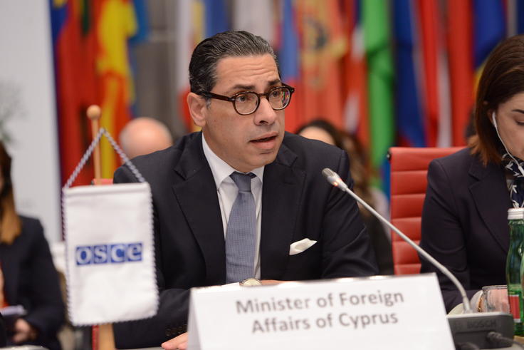 The Minister of Foreign Affairs of Cyprus, Dr. Constantinos Kombos, addresses the opening session of the Forum for Security Co-operation, Vienna, 17 January 2024
