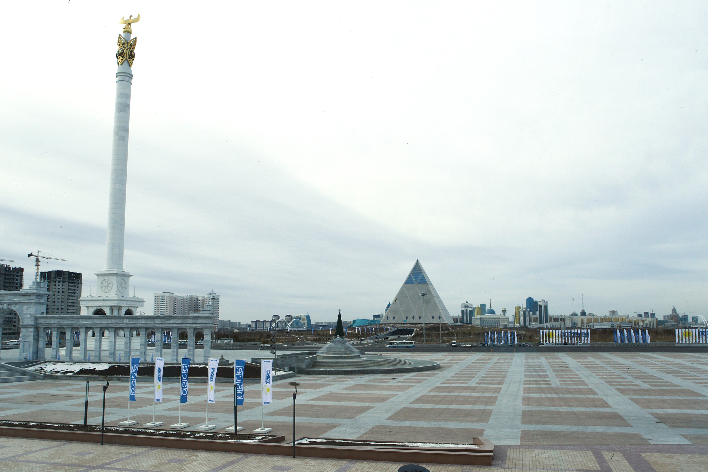 Vu sur une place donnant sur le Palais de la paix et de la concorde, Astana, le 26 novembre 2010.