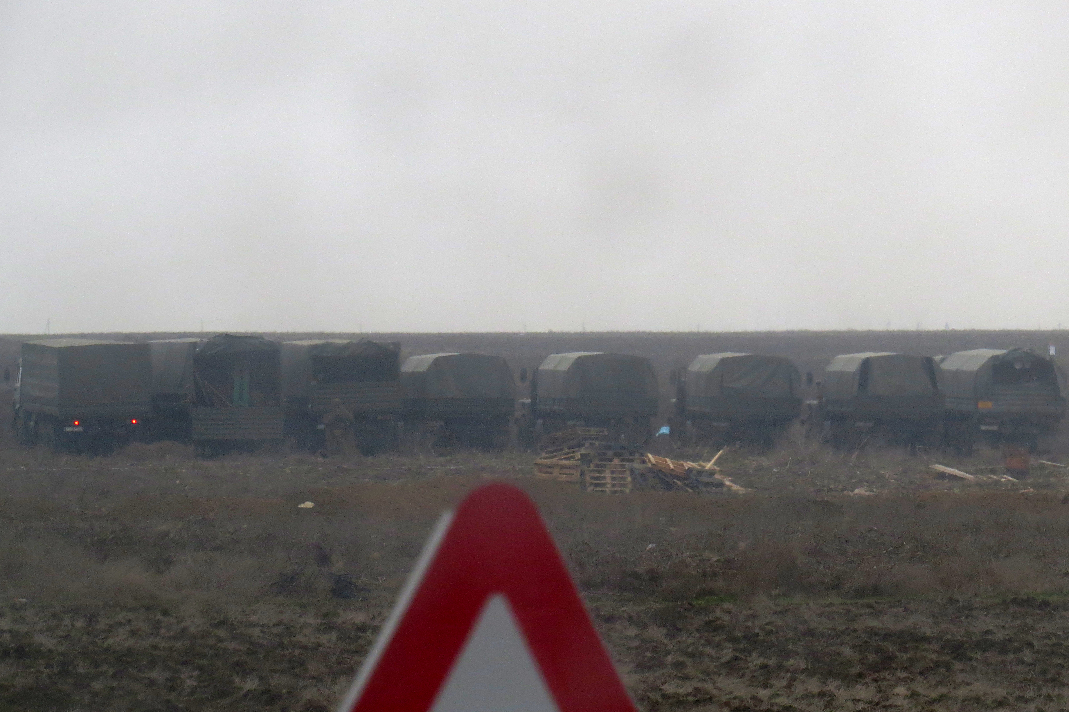 Military vehicles parked at the second checkpoint.