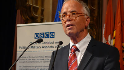 Thomas Göbel, Head of Arms Control Division of the German Foreign Ministry: "It is the first international document that codifies the principle of democratic control of the armed forces – a principle that due to Germany’s history is very dear to us and that is deeply rooted in our constitution."