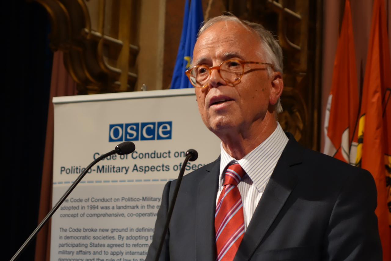 Dr. Werner Fasslabend, Federal Minister of Defence of Austria from 1990 to 2000 , at a commemorative event at the Military History Museum of the Austrian Armed Forces to mark 20 years of the OSCE Code of Conduct on Politico-Military Aspects of Security, Vienna, 8 July 2014.