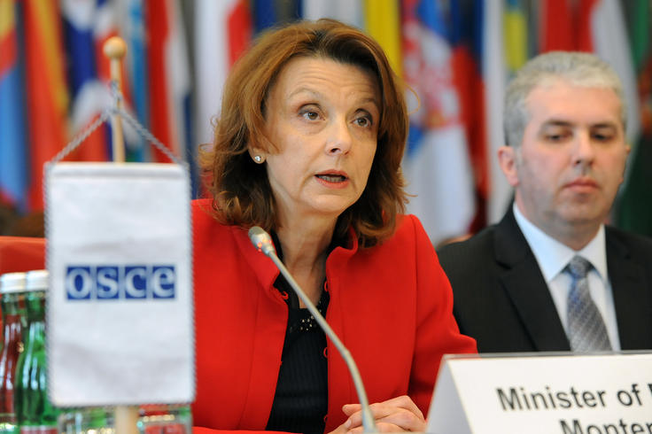 Montenegro’s Defence Minister Milica Pejanovic-Djurisic speaking at the meeting of the OSCE Forum for Security Co-operation devoted to the joint Montenegro/OSCE/UNDP Demilitarization Programme, Vienna 20 April 2014.