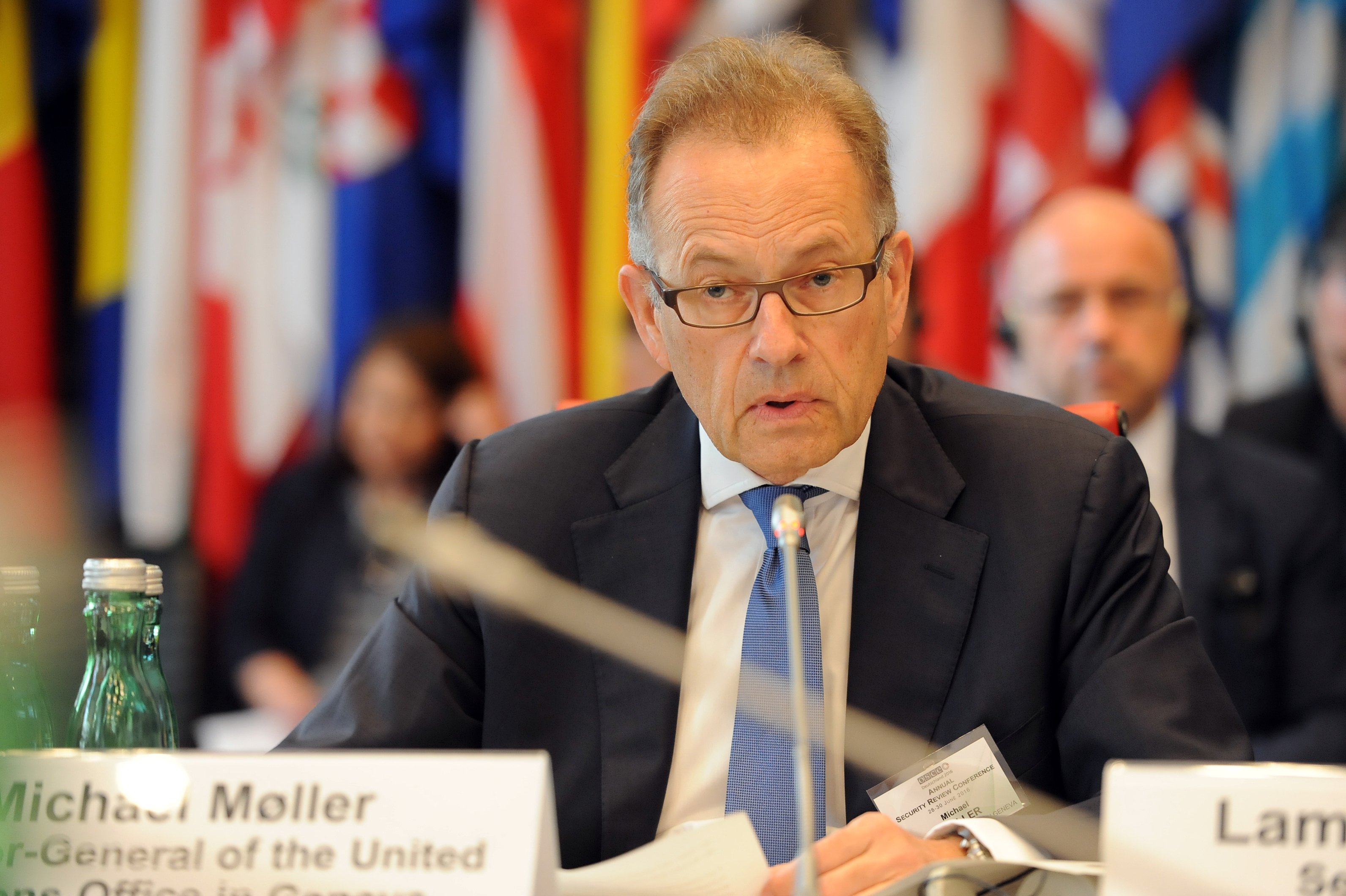 Michael Møller, Director-General of the United Nations Office at Geneva, speaks his thoughts at the Annual Security Review Conference in Vienna, 28 June 2016.